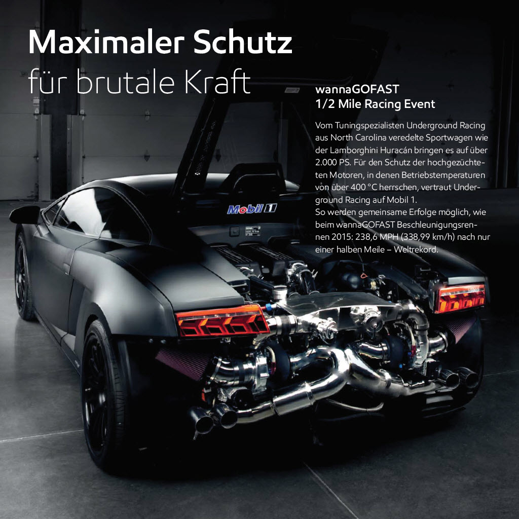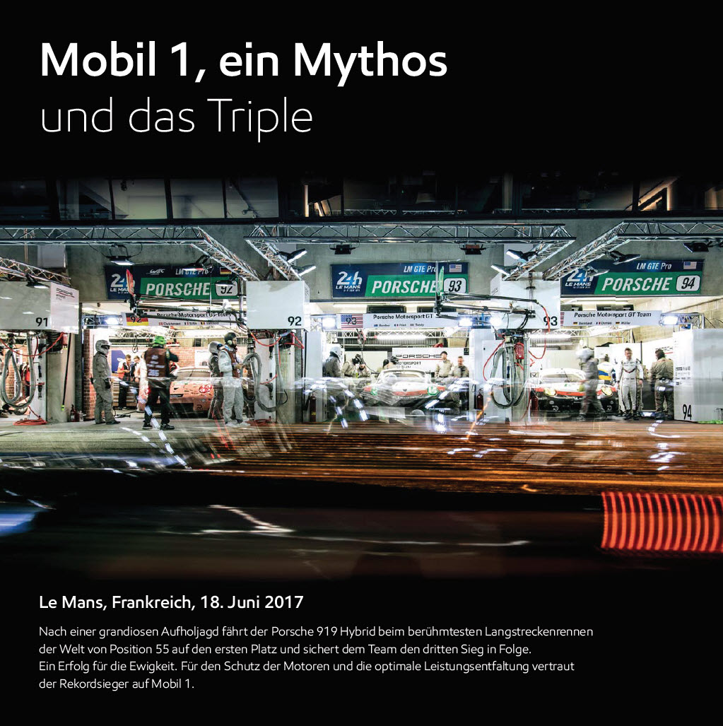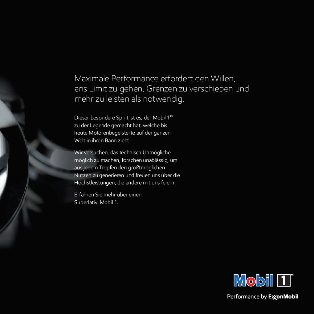 Dieser besondere Spirit ist es, der Mobil 1 zu der Legende gemacht hat, welche bis heute Motorenbegeisterte auf der ganzen Welt in ihren Bann zieht. Wir versuchen, das technisch Unmögliche möglich zu machen, forschen unablässig, um aus jedem Tropfen den grösstmöglichen Nutzen zu generieren und freuen uns über die Höchleistung, die andere mit uns feiern.