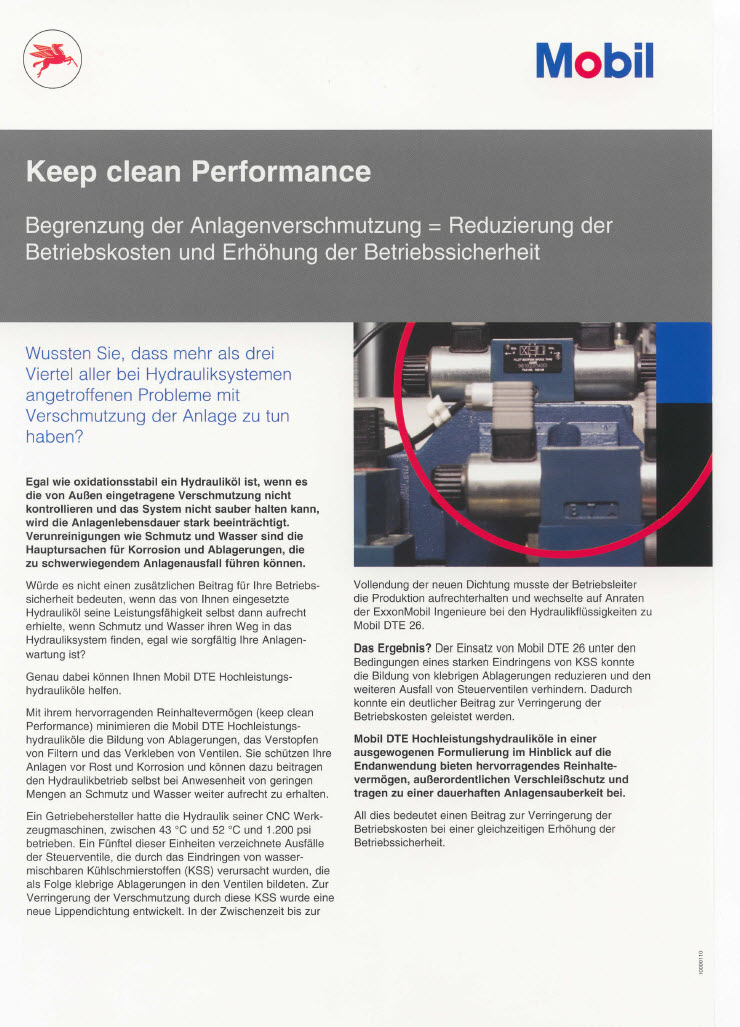Lesen Sie mehr über die Keep clean Performance unserer Mobil DTE Hochleistungshydrauliköle.