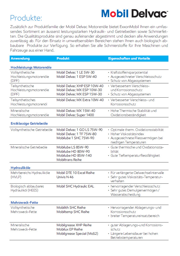 Erfahren Sie mehr über den Einsatz von Mobil Schmierstoffen für Baumaschinen in unserer Broschüre.