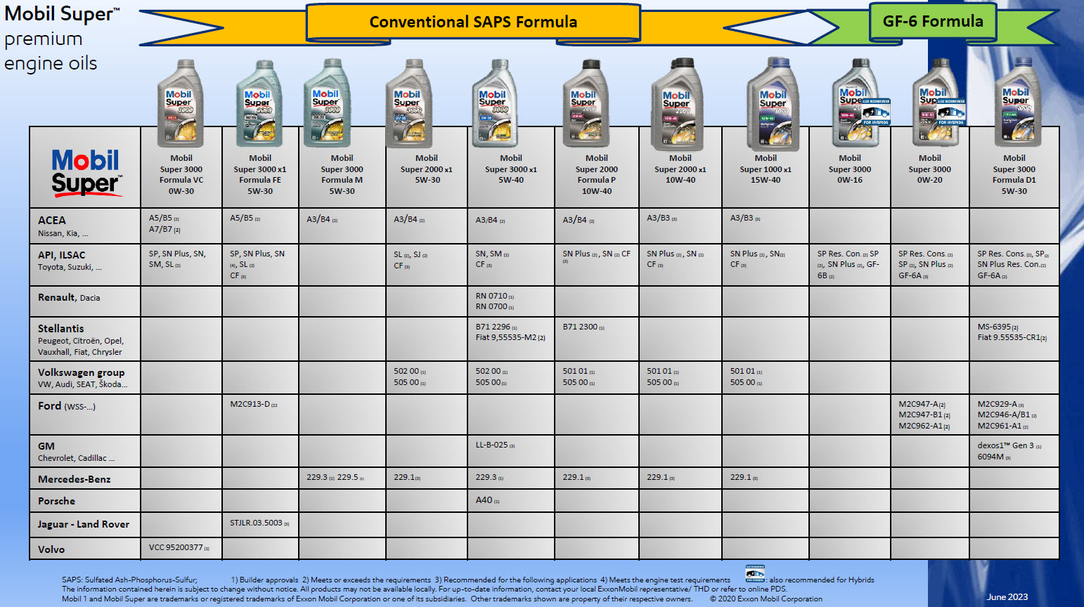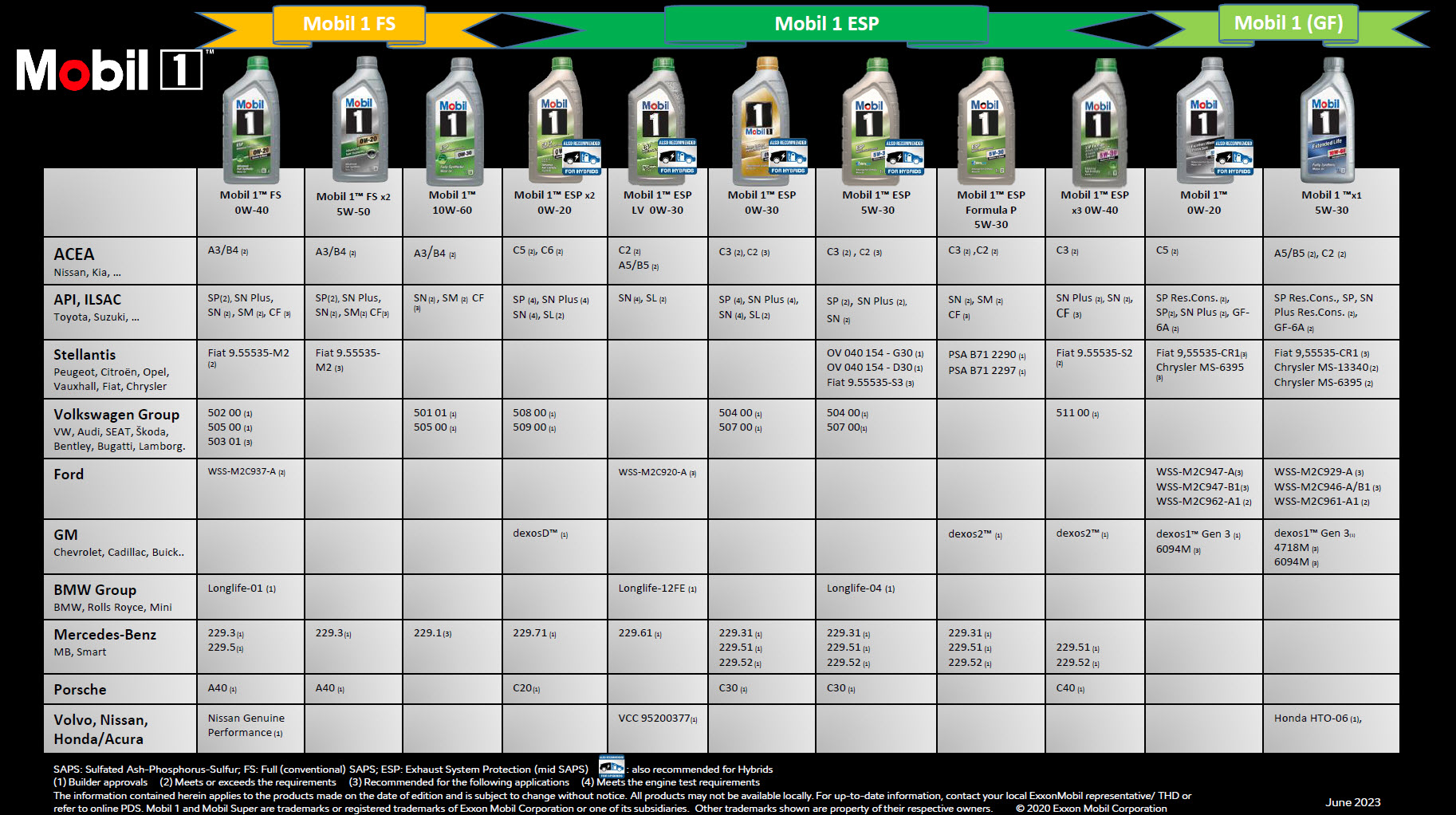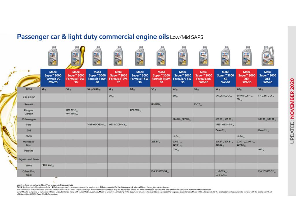 In der untenstehenden Tabelle, finden Sie eine Übericht von Motorenöl Spezifikationen für PKW's.